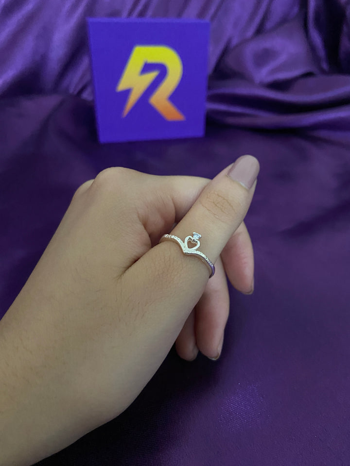 Anel Coração com Coroa em Prata 925 Cravejado com Zircônias