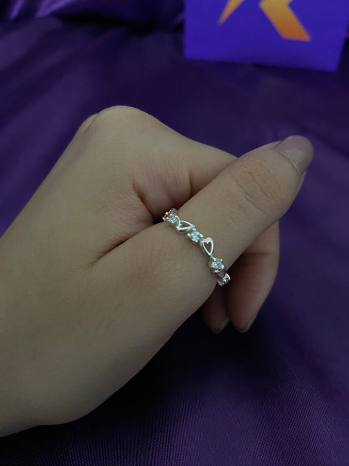 Encante-se com a leveza e romantismo deste anel em Prata 925, com design intercalado de corações vazados e zircônias brilhantes. Um modelo versátil e delicado, perfeito para quem ama joias com significado e quer adicionar um toque de carinho ao visual. Ideal para uso diário ou como presente especial.