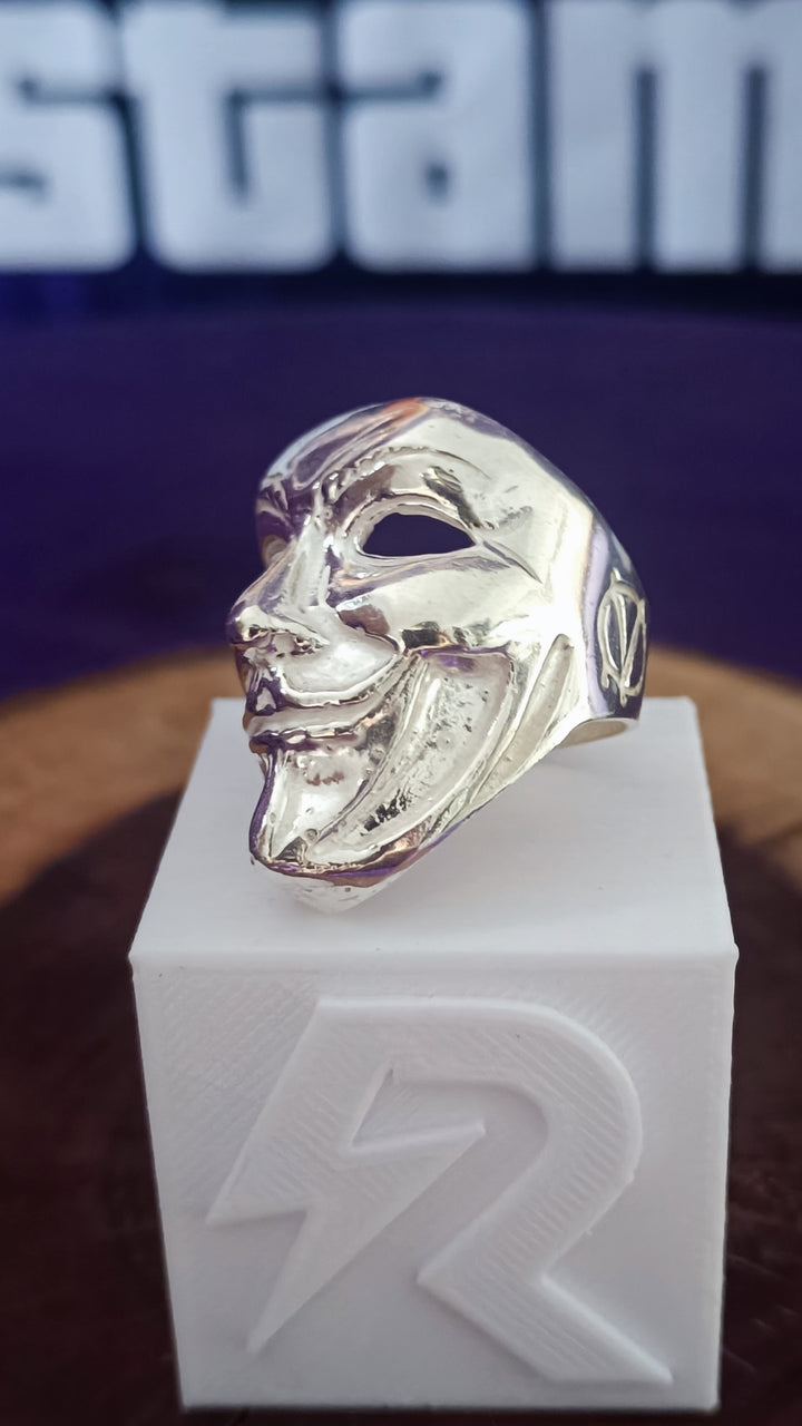 Inspirado no icônico símbolo da rebelião e liberdade, este anel em prata 925 traz a emblemática máscara de Guy Fawkes, eternizada pelo filme V de Vingança. Com acabamento detalhado e expressão marcante, é uma peça para quem valoriza atitude, estilo e significado.