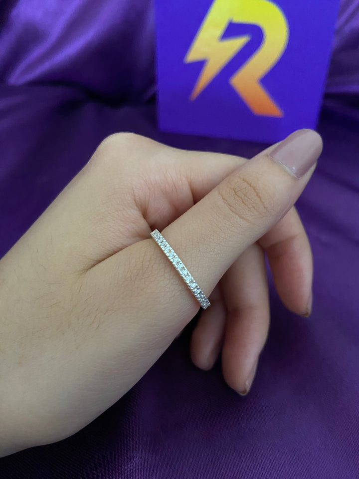 Anel Meia Aliança em Prata 925 Cravejado com Zircônias Brancas