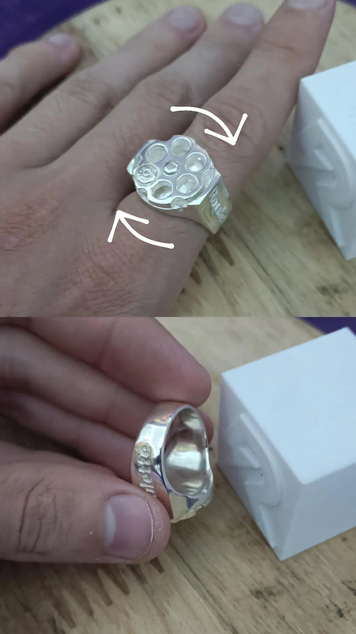 Design ousado e provocativo, este anel em prata 925 simula o tambor de um revólver — uma referência direta à clássica "roleta russa". Com acabamento detalhado e alto relevo, a peça carrega uma estética marcante para quem não tem medo de se destacar.
